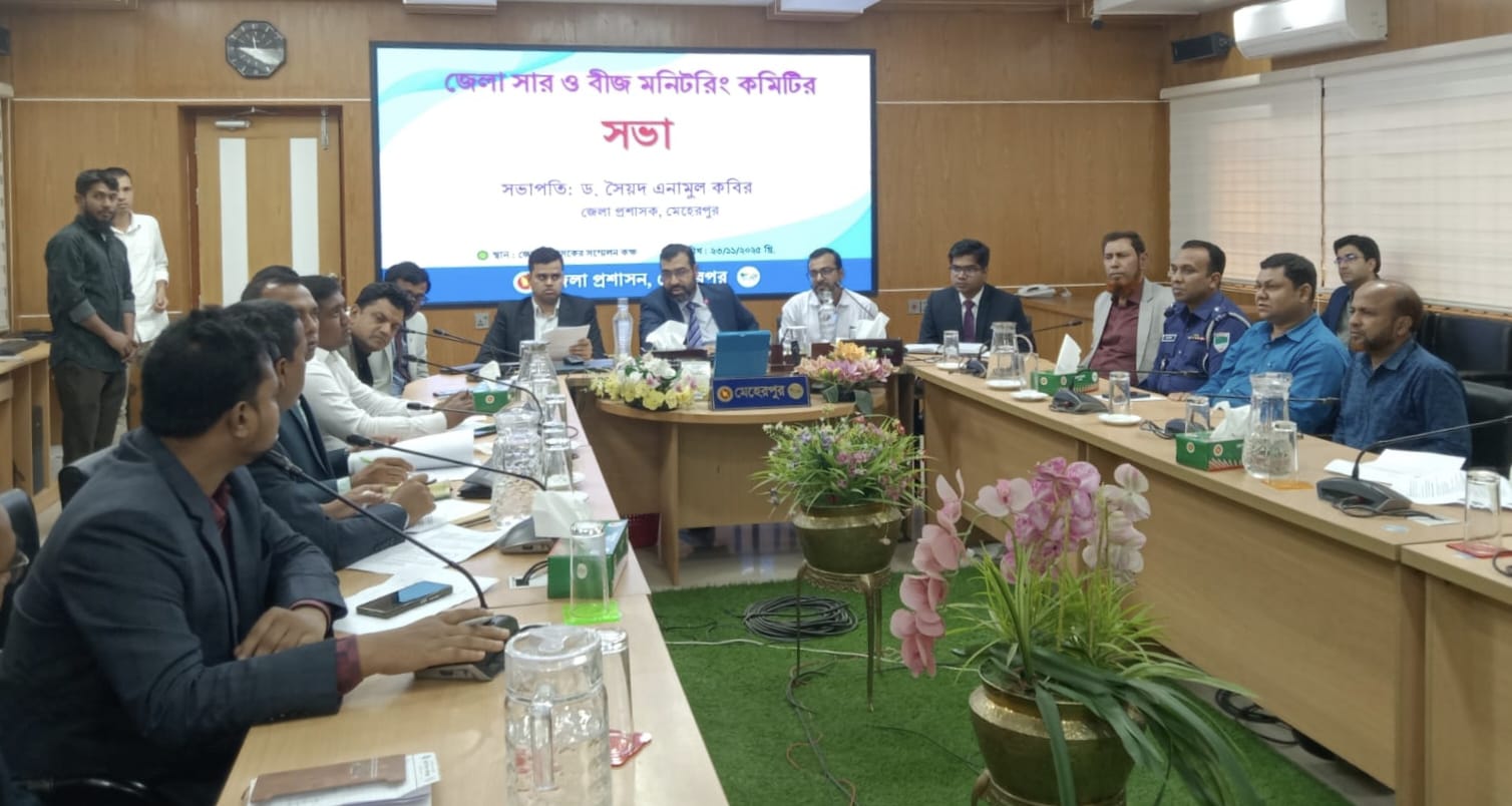 জেলা প্রশাসক ড. সৈয়দ এনামুল কবীরের সভাপতিত্বে অনুষ্ঠিত সভায় বক্তব্য রাখেন অতিরিক্ত জেলা প্রশাসক তরিকুল ইসলাম, জেলা কৃষি সম্প্রসারণ অধিদপ্তরের উপ-পরিচালক সঞ্জিব কুমার, সদর উপজেলা নির্বাহী অফিসার মোহাম্মদ খায়রুল ইসলাম, মুজিবনগর উপজেলা নির্বাহী অফিসার পলাশ মন্ডল এবং গাংনী উপজেলা নির্বাহী অফিসার মো. আনোয়ার হোসেন।