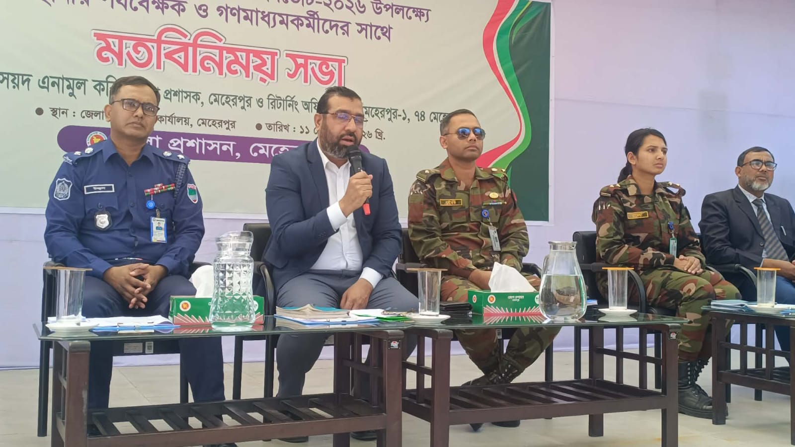 ত্রয়োদশ জাতীয় সংসদ নির্বাচন ও গণভোট উপলক্ষে মেহেরপুর জেলা প্রশাসনের উদ্যোগে স্থানীয় পর্যবেক্ষক ও গণমাধ্যম কর্মীদের সাথে মতবিনিময় সভা অনুষ্ঠিত হয়েছে।