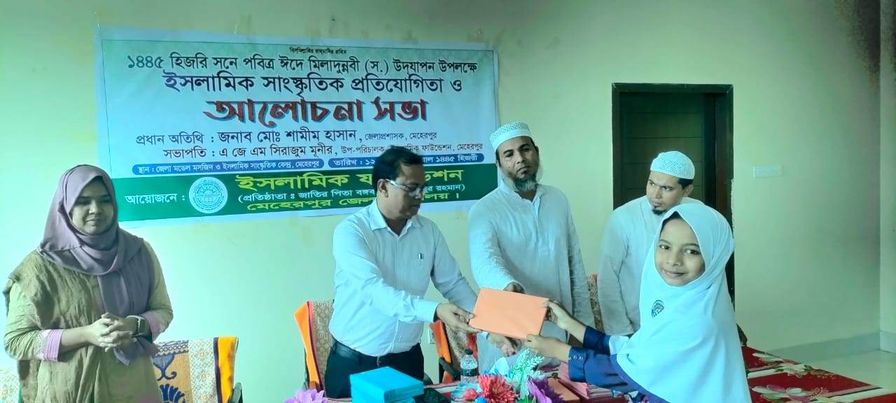 মেহেরপুরে পবিত্র ঈদে মিলাদুন্নবী (সাঃ) উপলক্ষে আলোচনা সভা, ইসলামিক সাংস্কৃতিক প্রতিযোগিতা ও বিজয়ীদের মাঝে পুরস্কার বিতরণ । মেহেরপুর জেলা ইসলামিক ফাউন্ডেশনের উদ্যোগে বুধবার দুপুরের দিকে ইসলামিক ফাউন্ডেশন মিলনায়তনে আলোচনা সভা,ইসলামিক সাংস্কৃতিক প্রতিযোগিতা ও বিজয়ীদের মাঝে পুরস্কার বিতরণ করা হয়।