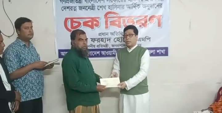 জনপ্রশাসন প্রতিমন্ত্রী ফরহাদ হোসেন উপস্থিত থেকে আর্থিক অনুদানের চেক বিতরণ করেন। চেক বিতরণ অনুষ্ঠানে জনপ্রশাসন প্রতিমন্ত্রী ফরহাদ হোসেন বলেন, বর্তমান সরকার ক্ষমতায় আসার পর সব সময় দুঃখী মানুষের পাশে থেকে সাহায্য সহযোগিতা করে আসছে।