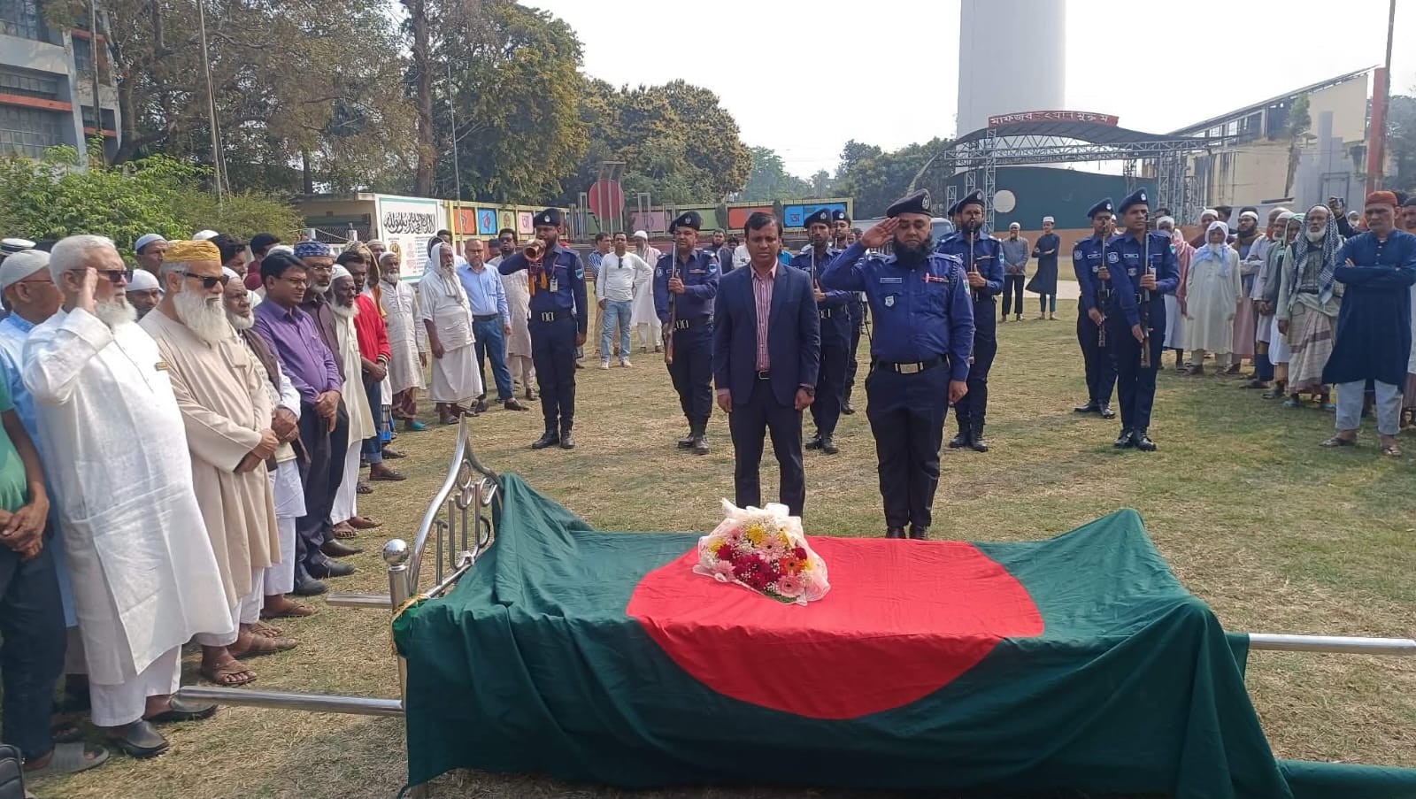 সদর উপজেলা নির্বাহী কর্মকর্তা (ইউএনও) মোঃ খায়রুল ইসলাম জাতীয় পতাকায় আচ্ছাদিত মরদেহে পুষ্পমাল্য অর্পণ করেন। এ সময় পুলিশের একটি চৌকস দল গার্ড অব অনার প্রদান করে এবং ইউএনও রাষ্ট্রের পক্ষে সালাম গ্রহণ করেন। বিউগলে করুণ সুর বাজানো হয়, যা উপস্থিত সকলকে শোকাভিভূত করে।