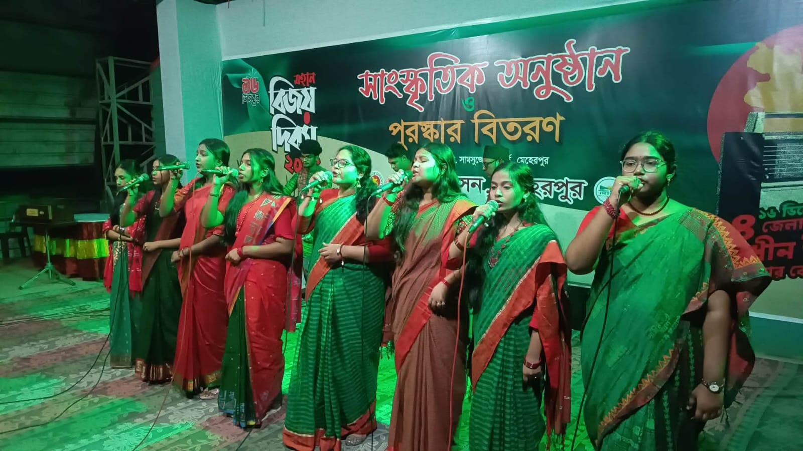 মেহেরপুর জেলা প্রশাসনের উদ্যোগে মহান বিজয় দিবস উপলক্ষে সাংস্কৃতিক অনুষ্ঠান অনুষ্ঠিত হয়েছে। মঙ্গলবার রাতে মেহেরপুর শহীদ শামসুজ্জোহা নগর উদ্যানের মফিজুর রহমান মুক্ত মঞ্চে এই অনুষ্ঠান অনুষ্ঠিত হয়।