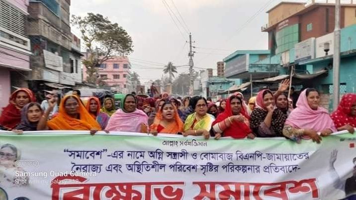 সমাবেশের নামে অগ্নি সন্ত্রাসী ও বোমাবাজ বিএনপি -জামায়াতের নৈরাজ্য এবং অস্থিতিশীল পরিবেশ সৃষ্টির পরিকল্পনার প্রতিবাদে বাংলাদেশ যুব মহিলা লীগের উদ্যোগে বিক্ষোভ মিছিল অনুষ্ঠিত হয়েছে।