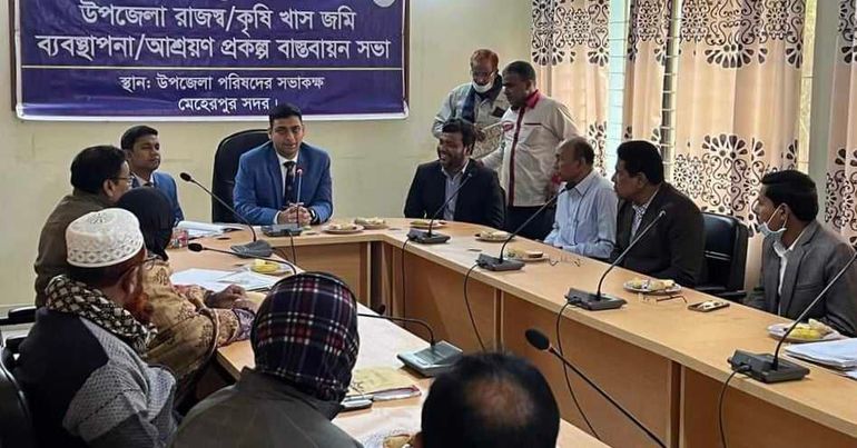 মেহেরপুর উপজেলার রাজস্ব, কৃষি খাস জমি ব্যবস্থাপনা,আশ্রায়ন প্রকল্প বাস্তবায়ন সভা অনুষ্ঠিত হয়েছে। বুধবার সকালের দিকে সদর উপজেলা পরিষদ মিলনায়তনে এ সভা অনুষ্ঠিত হয়।