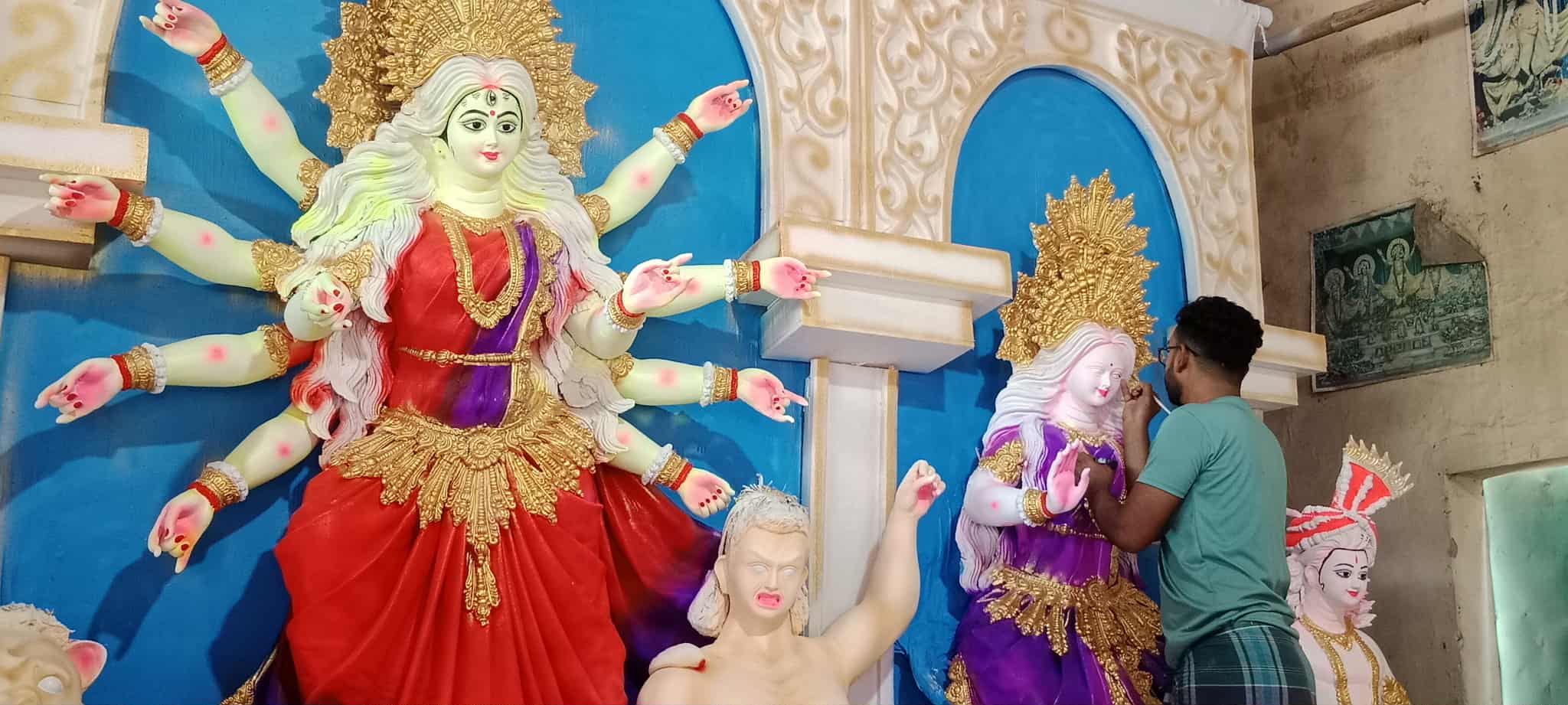মণ্ডপগুলোতে রঙ-তুলির আঁচড়ে চলছে শেষ মুহূর্তের সাজসজ্জা। বিভিন্ন স্থানে আলোকসজ্জা ও বর্ণিল সাজে সেজেছে পূজামণ্ডপ। পূজাকে কেন্দ্র করে প্রশাসনের পক্ষ থেকে ব্যাপক নিরাপত্তামূলক ব্যবস্থা নেওয়া হয়েছে।