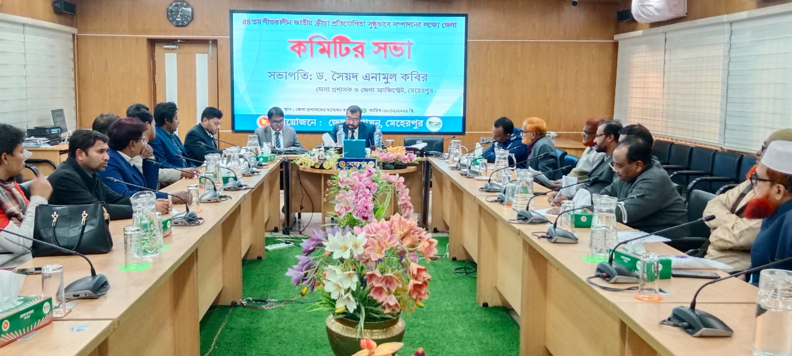 মেহেরপুর জেলা পর্যায়ে ৫৪তম শীতকালীন ক্রীড়া প্রতিযোগিতা উপলক্ষে একটি প্রস্তুতি সভা অনুষ্ঠিত হয়েছে। বৃহস্পতিবার বিকেলে জেলা প্রশাসকের সম্মেলন কক্ষে এ সভা অনুষ্ঠিত হয়।
