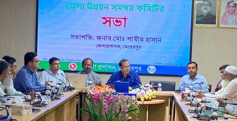 জেলা প্রশাসক মোঃ শামীম হাসানের সভাপতিত্বে উন্নয়ন সমন্বয় সভায় বক্তব্য রাখেন জেলা পরিষদের চেয়ারম্যান অ্যাডভোকেট আব্দুস সালাম, অতিরিক্ত জেলা ম্যাজিস্ট্রেট মোঃ তানভীর হাসান রুমান, এন এস আই’র ডিডি মিজানুর রহমান, মেহেরপুর-২৫০ শয্যা বিশিষ্ট জেনারেল হাসপাতালের সুপার ডাঃ জমির মোঃ হাসিবুস সাত্তার, জেলা আনসার কমান্ড্যান্ট প্রদীপ চন্দ্র দত্ত,পিপি পল্লব ভট্টাচার্য, মুজিবনগর উপজেলা পরিষদের চেয়ারম্যান জিয়াউদ্দিন বিশ্বাস, মেহেরপুর জেলা সমাজ সেবা অধিদপ্তরের উপ-পরিচালক কাজী কাদের মোঃ ফজলে রাব্বি, জেলা মহিলা বিষয়ক অধিদপ্তরের উপ-পরিচালক নীলা হাফিয়া প্রমুখ।