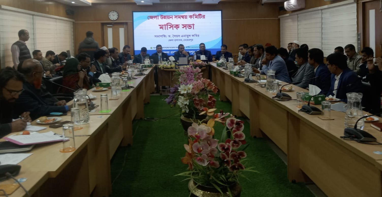 মেহেরপুর জেলা প্রশাসনের উদ্যোগে জেলা উন্নয়ন সমন্বয় কমিটির মাসিক সভা অনুষ্ঠিত হয়েছে। রবিবার সকালে জেলা প্রশাসকের সম্মেলন কক্ষে এ সভা অনুষ্ঠিত হয়।