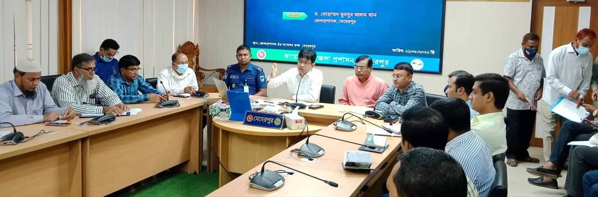 জেলা প্রশাসক ড. মোহাম্মদ মুনসুর আলম খানের সভাপতিত্বে সভায় অন্যদের মধ্যে অতিরিক্ত জেলা প্রশাসক নাজমুল হুদা, অতিরিক্ত পুলিশ সুপার অপু সারোয়ার, গাংনী উপজেলা পরিষদের চেয়ারম্যান এমএ খালেক, মেহেরপুর জেলা যুব উন্নয়ন অধিদপ্তরের উপ-পরিচালক জাহিদ হোসেন, জেলা ক্রীড়া অফিসার আরিফ আহমেদ, জেলা মৎস্য কর্মকর্তা রোকনুজ্জামান, ইসলামিক ফাউন্ডেশনের উপ-পরিচালক কে এম শাহীন কবীর, সদর উপজেলা নির্বাহি অফিসার মোহাম্মদ ওবায়দুল্লাহ, মুজিবনগর উপজেলা নির্বাহি কর্মকর্তা সুজন সরকার, মেহেরপুর সদর উপজেলা স্বাস্থ্য ও পরিবার পরিকল্পনা কর্মকর্তা ডাঃ অলোক কুমার দাস,সামাজিক বন কর্মকর্তা জাফরুল্লাহ সহ জেলা পর্যায়ের কর্মকর্তাগণ উপস্থিত ছিলেন।