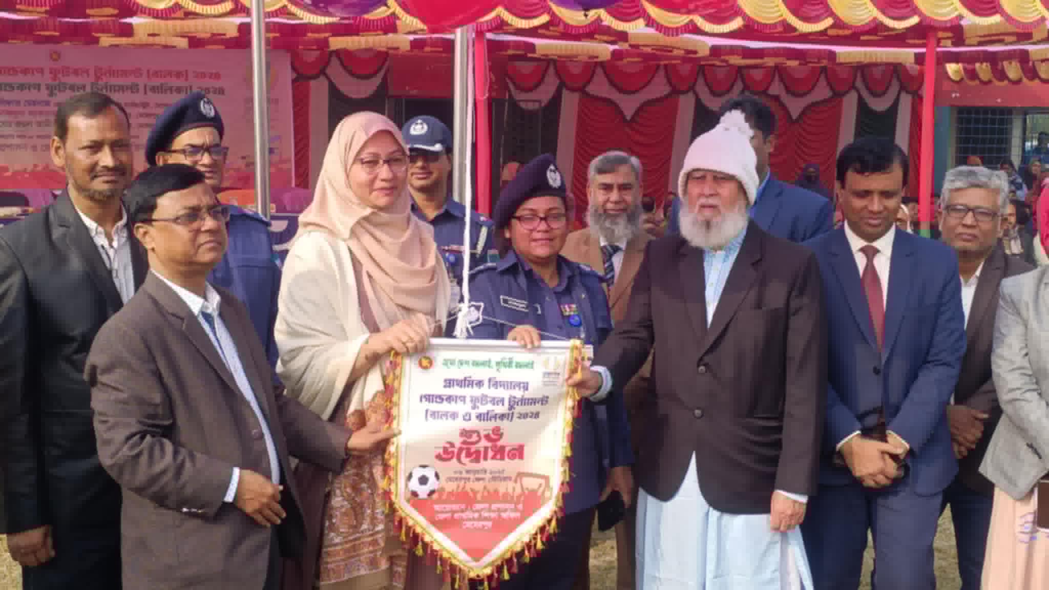 মেহেরপুর জেলা প্রশাসন ও জেলা প্রাথমিক শিক্ষা অফিসের উদ্যোগে মেহেরপুর জেলা পর্যায়ে প্রাথমিক বিদ্যালয় গোল্ডকাপ ফুটবল টুর্নামেন্টের বর্ণাঢ্য উদ্বোধন করা হয়েছে।
