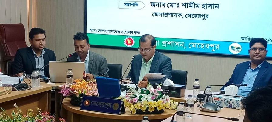 জেলা প্রশাসক মোঃ শামীম হাসানের সভাপতিত্বে জেলা মানবিক সহায়তা কর্মসূচি বাস্তবায়ন কমিটির সভায় বক্তব্য রাখেন স্থানীয় সরকার বিভাগের উপ পরিচালক মোঃ শামীম হোসেন, অতিরিক্ত জেলা জেলা প্রশাসক আব্দুল কাদের মিয়া, এন এস আই’র ডিডি মিজানুর রহমান, জেলা আনসার কমান্ডেন্ট প্রদীপ চন্দ্র দত্ত, মেহেরপুর সরকারী মহিলা কলেজের অধ্যক্ষ প্রফেসর রফিকুল ইসলাম,সদর উপজেলা নির্বাহী কর্মকর্তা কাজী নাজিব হাসান, মুজিবনগর উপজেলা নির্বাহী কর্মকর্তা অনিমেষ বিশ্বাস,আর ডি সি রনি খাতুন,মেহেরপুর জেলা সমাজ সেবা অধিদপ্তরের উপ-পরিচালক কাজী কাদের মোঃ ফজলে রাব্বি, ইসলামিক ফাউন্ডেশন এর উপ-পরিচালক সিরাজুম মনির, জেলা মহিলা বিষয়ক অধিদপ্তরের উপ-পরিচালক নীলা হাফিয়া।