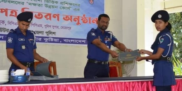 মেহেরপুর পুলিশে কর্মরত নায়েক কনস্টেবলদের দক্ষতা উন্নয়ন কোর্স এর ১৫তম ব্যাচের সমাপনী ও সনদপত্র বিতরণী অনুষ্ঠান অনুষ্ঠিত হয়েছে। বৃহস্পতিবার দুপুরের দিকে পুলিশ লাইন ড্রিলসেড মিলনায়তনে সমাপনী অনুষ্ঠান অনুষ্ঠিত হয়।
