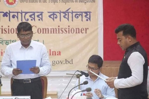খুলনা বিভাগের ভারপ্রাপ্ত বিভাগীয় কমিশনার শহীদুল ইসলাম শপথ বাক্য পাঠ করান। শপথ শেষে মেয়র মাহফুজুর রহমান রিটন বিভাগীয় কমিশনারের ফুলেল শুভেচ্ছা জানান। এরপর পরই পর্যায়ক্রমে নবনির্বাচিত কাউন্সিলর বৃন্দ শপথ গ্রহণ করেন।