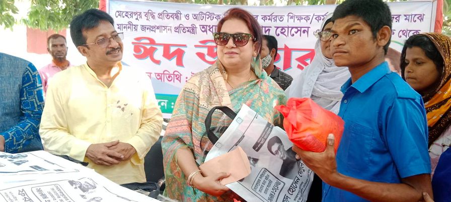 বৃহস্পতিবার বিকালের দিকে মেহেরপুর বুদ্ধি প্রতিবন্ধী ও অটিস্টিক বিদ্যালয় প্রাঙ্গণে মেহেরপুর বুদ্ধি প্রতিবন্ধী ও অটিস্টিক বিদ্যালয়ে কর্মরত শিক্ষক, কর্মচারী ও শিক্ষার্থীদের মাঝে ঈদ উপহার বিতরণ করা হয়। জনপ্রশাসন প্রতিমন্ত্রী ফরহাদ হোসেনের সহধর্মিনী ও যুব মহিলা লীগের কেন্দ্রীয় সদস্য সৈয়দা মোনালিসা ইসলাম উপস্থিত থেকে মেহেরপুর বুদ্ধি প্রতিবন্ধী ও অটিস্টিক বিদ্যালয়ে কর্মরত শিক্ষক, কর্মচারী ও শিক্ষার্থীদের মাঝে ঈদ উপহার বিতরণ করেন।