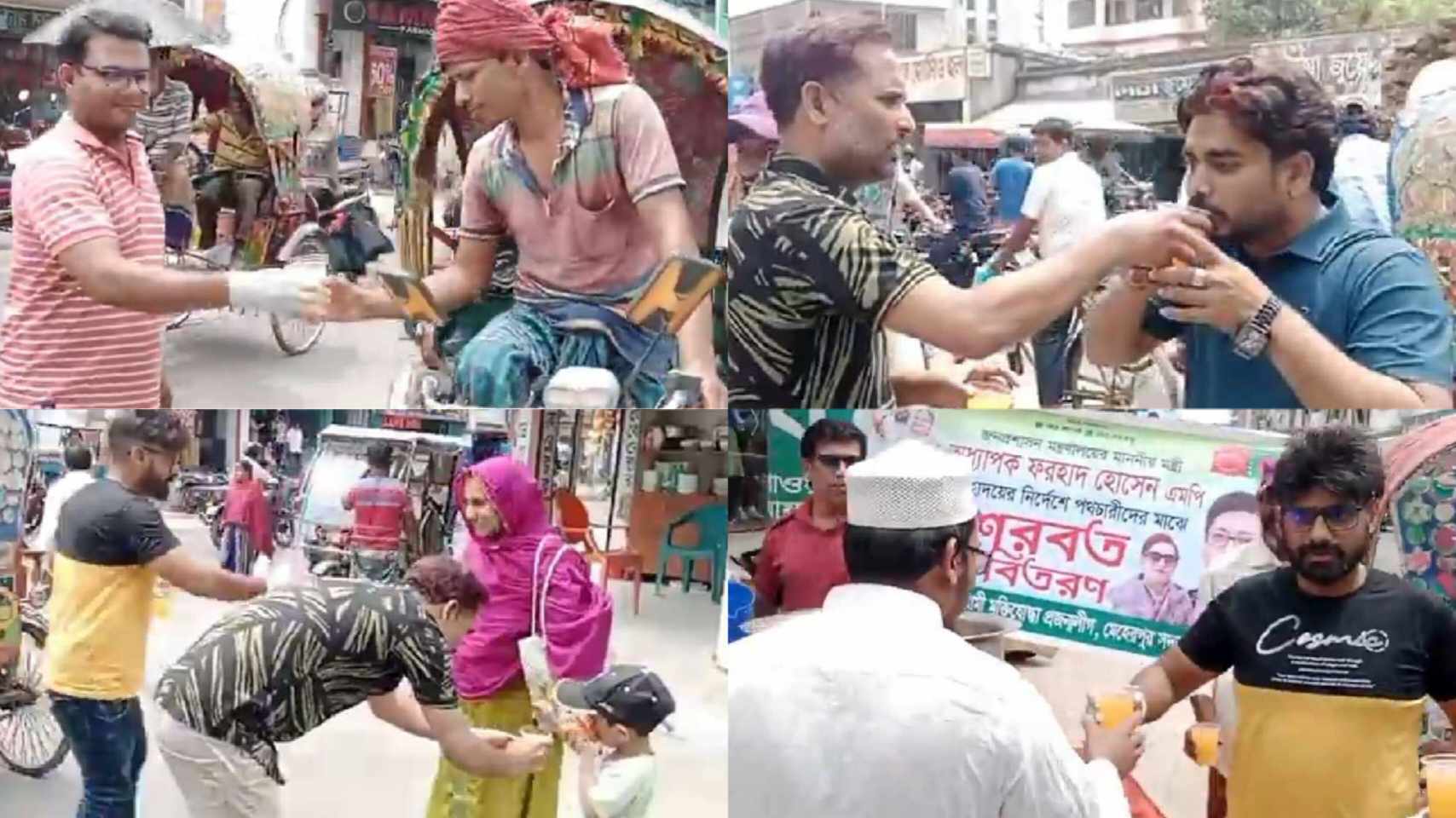 মেহেরপুর পৌরসভার কাউন্সিলর নুরুল আশরাফ রাজীব শরবত খাওয়ানোর উদ্বোধন করেন। এ সময় সেখানে অন্যদের মধ্যে মেহেরপুর জেলা আওয়ামী মুক্তিযোদ্ধা প্রজন্ম লীগের আহ্বায়ক তারিকুল ইসলাম রাজিব, সদর উপজেলা সভাপতি নাসিম খান, সাধারণ সম্পাদক মিনহাজুল আবেদিন নাান্ন,কেন্দ্রীয় কার্যনির্বা কমিটির মুক্তিযোদ্ধা বিষয়ক সম্পাদক মাহফুজুর রহমান রন্টু,জেলা কমিটির যুগ্ম আহবায়ক ইফতেখার হোসেন সবুজ প্রমুখ উপস্থিত ছিলেন।