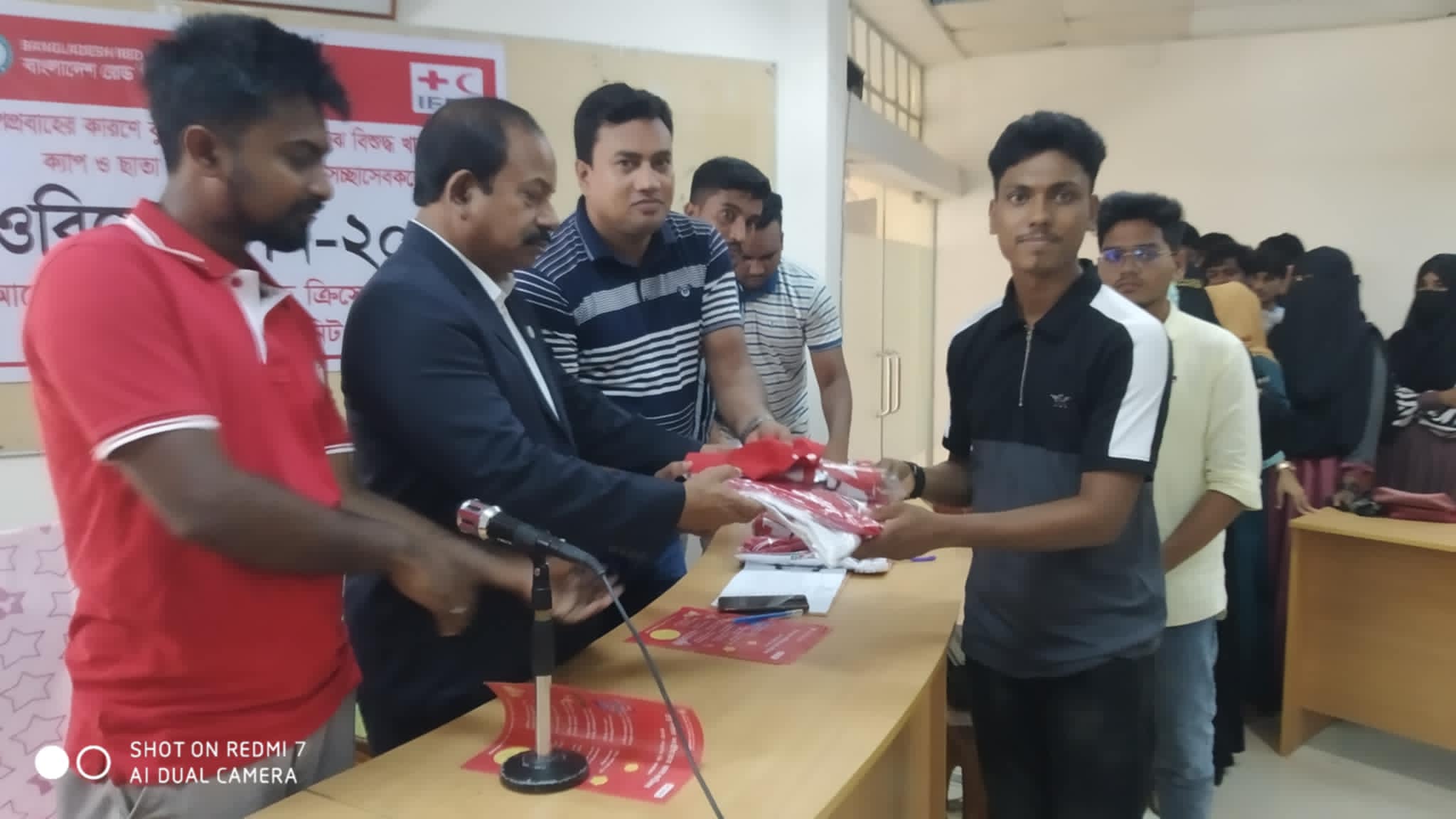 পড়ে স্বেচ্ছাসেবকদের মাঝে ছাতা ও গেঞ্জি বিতরন করা হয়। এ সময় ইউনিট লেভেল অফিসার সাব্বির হোসেন সেখানে উপস্থিত ছিলেন।