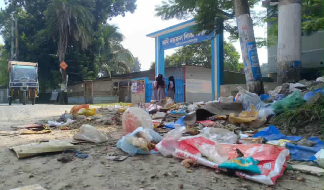 শহরের ৭ নং ওয়ার্ডে অবস্থিত সুপরিচিত শিক্ষা প্রতিষ্ঠান কবি নজরুল শিক্ষা মঞ্জিল—এর মূল গেটের সামনেই তৈরি হয়েছে ছোটখাটো ময়লার ভাগাড়। দুর্গন্ধ ও অস্বাস্থ্যকর পরিবেশে শিক্ষার্থীদের পক্ষে ক্লাস করা কঠিন হয়ে পড়েছে।