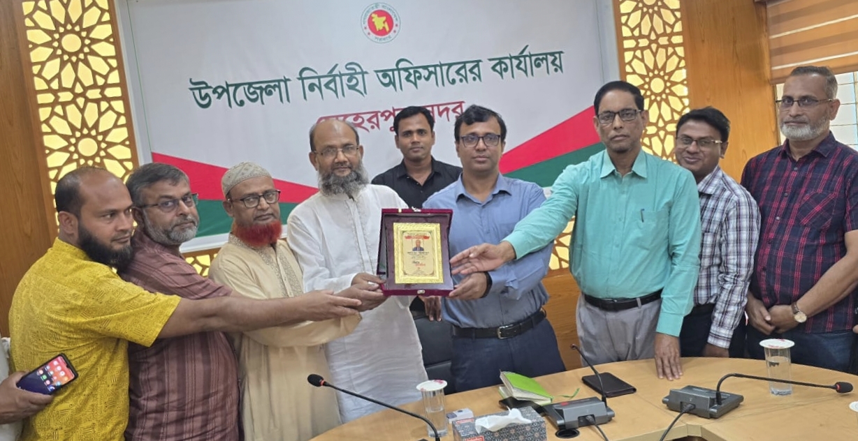 অনুষ্ঠান শেষে অবসরপ্রাপ্ত প্রশাসনিক কর্মকর্তা বজলুর রহমানের হাতে সম্মাননা স্মারক তুলে দেওয়া হয়।