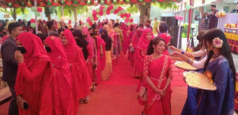 মেহেরপুর সরকারি মহিলা কলেজের অধ্যক্ষ প্রফেসর রফিকুল ইসলামের সভাপতিত্বে নবীন বরণ অনুষ্ঠানে একাদশ শ্রেণির ছাত্রীদের মিষ্টিমুখ করিয়ে এবং ফুলের পাপড়ি ছিটিয়ে বরণ করে নেয়া হয়।