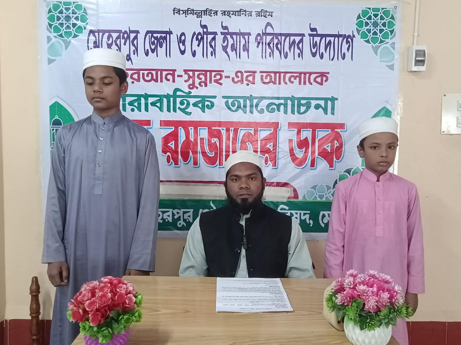 পবিত্র মাহে রমজান উপলক্ষে মেহেরপুর জেলা ও পৌর ইমাম পরিষদের উদ্যোগে এবং মেহেরপুর নিউজের সহযোগিতায় কুরআন-সুন্নাহর আলোকে ধারাবাহিক আলোচনা অনুষ্ঠান ‘মাহে রমজানের ডাক’ অনুষ্ঠিত হয়েছে। সোমবার দুপুরে মেহেরপুর শহরের থানাপাড়া মসজিদে এ অনুষ্ঠান আয়োজন করা হয়।