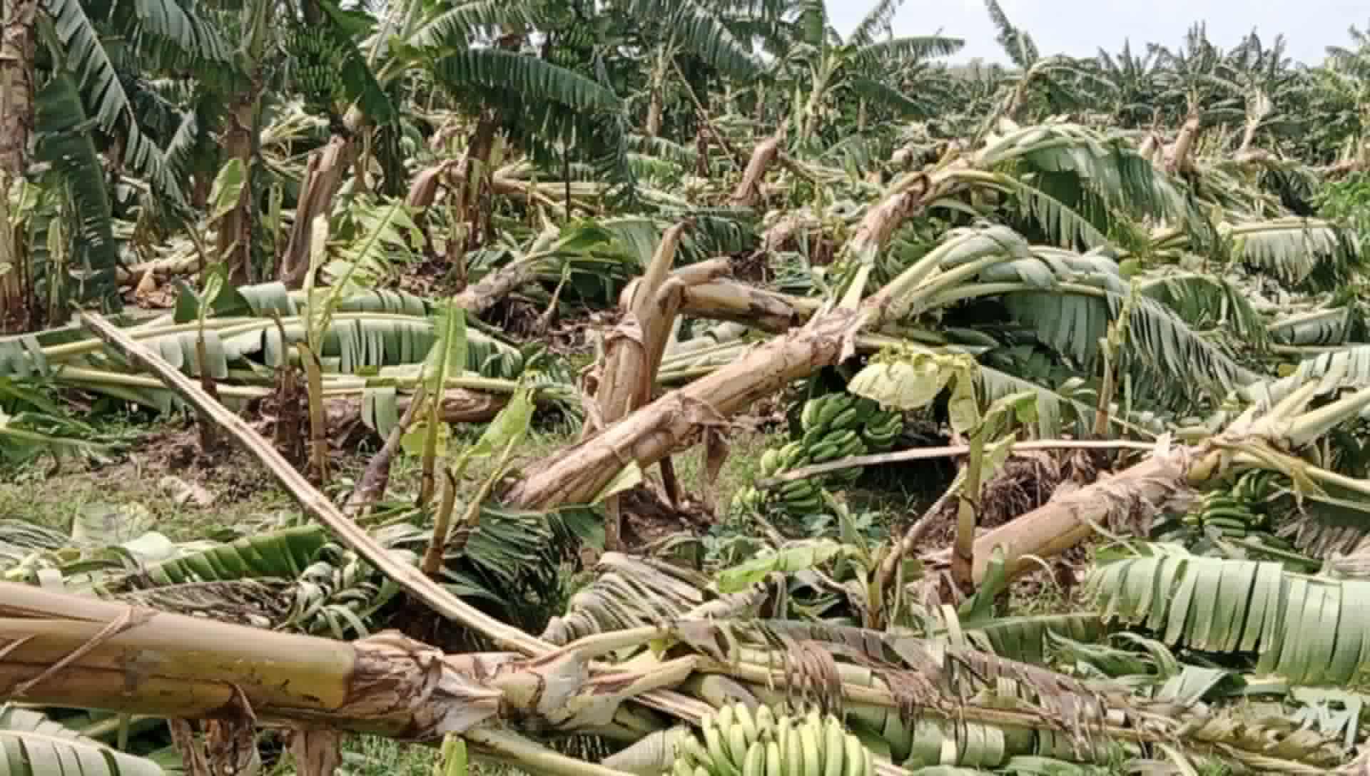 সরেজমিনে কলার জমিতে গিয়ে দেখা গেছে ৮ বিঘা জমির কলা গাছ সম্পূর্ণ ভেঙে পড়ে রয়েছে। জমিতে সারি সারি কলারকান্দি পড়ে রয়েছে। আবুল হায়াত জানান, ব্যাংকের মাধ্যমে লোন গ্রহণ করে ওই জমিতে কলার চাষ শুরু করি, কিন্তু এক ঝড়ে সব কলারকান্দি নষ্ট হয়ে গেছে। এতে প্রায় ১২ লক্ষ টাকার ক্ষতি হয়েছে বলে তিনি জানান।
