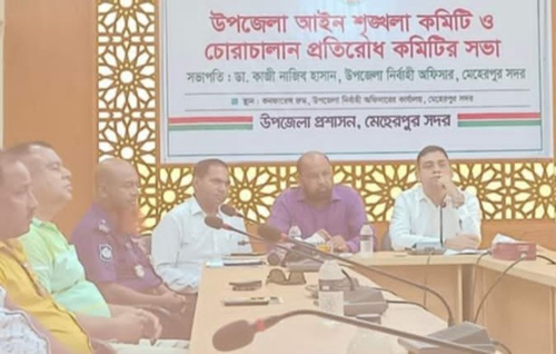 সদর উপজেলা নির্বাহী কর্মকর্তা ডা. কাজী নাজিব হাসানের সভাপতিত্বে আইনশৃঙ্খলা কমিটি ও চোরাচালান প্রতিরোধ কমিটির মাসিক সভায় অন্যদের মধ্যে সদর উপজেলা পরিষদের চেয়ারম্যান আনারুল ইসলাম, মেহেরপুর সদর উপজেলা সহকারী কমিশনার (ভূমি) ও নির্বাহী ম্যাজিস্ট্রেট গাজী মূয়ীদুর রহমান, সদর থানার ওসি (তদন্ত) মিজানুর রহমান, বুড়িপোতা ইউনিয়নের চেয়ারম্যান শাহজামান, আমদহ ইউনিয়নের চেয়ারম্যান রওশন আলী টোকনসহ সরকারি কর্মকর্তাগণ উপস্থিত ছিলেন।