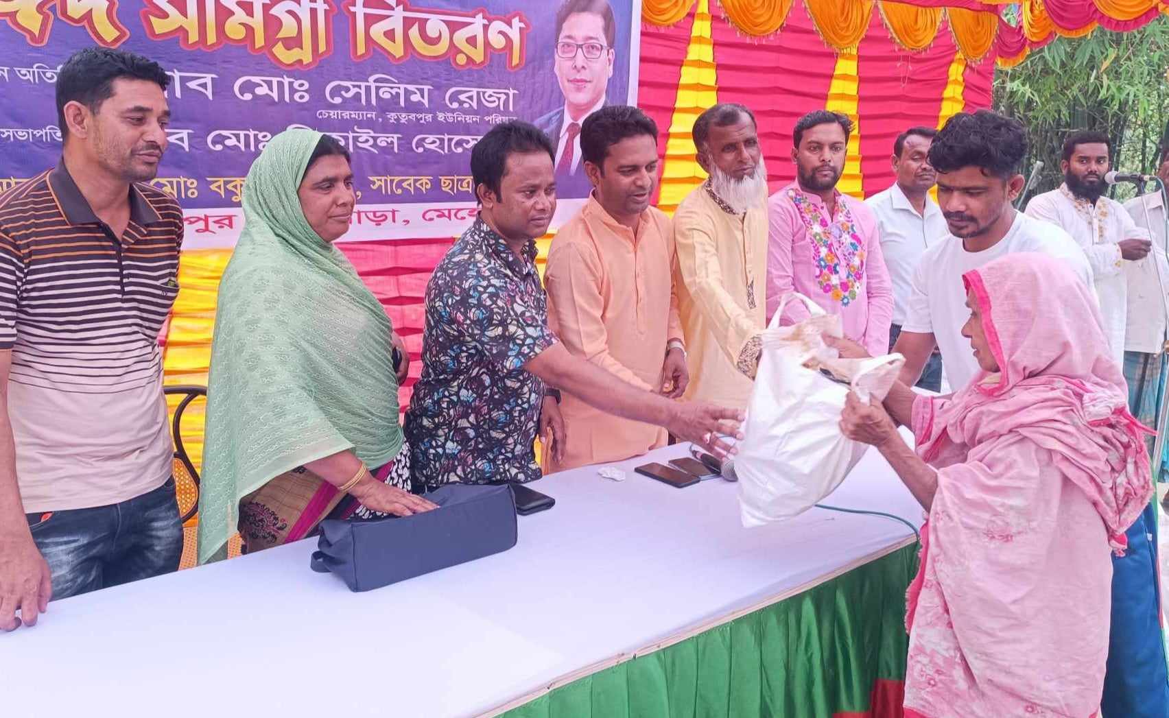 মোঃ মিকাইল হোসেনের সভাপতিত্বে ঈদ সামগ্রী বিতরণ অনুষ্ঠানে প্রধান অতিথি হিসেবে উপস্থিত ছিলেন কুতুবপুর ইউনিয়নের চেয়ারম্যান সেলিম রেজা।অন্যদের মধ্যে বক্তব্য রাখেন কুতুবপুর ইউনিয়ন যুব মহিলা লীগের সাধারণ সম্পাদিকা রোজিনা আক্তার, ৮ নং ওয়াড যুব মহিলা লীগের সভানেত্রী খাদিজা খাতুন।