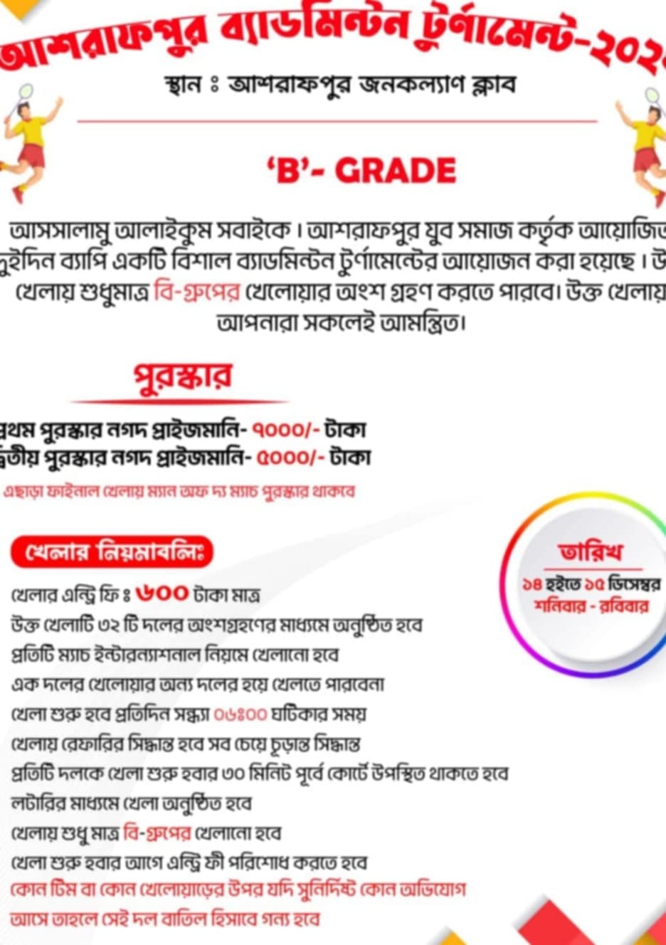 মূলপাতা বর্তমান পরিপ্রেক্ষিত ১৪ ডিসেম্বর আশরাফপুর জনকল্যাণ ক্লাব ব্যাডমিন্টন টুর্নামেন্টের উদ্বোধন
