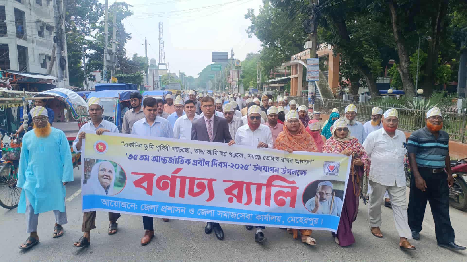 ৩৫তম আন্তর্জাতিক প্রবীণ দিবস উপলক্ষে মেহেরপুরে র্যালি ও আলোচনা সভা অনুষ্ঠিত হয়েছে। মঙ্গলবার সকালে জেলা প্রশাসনের উদ্যোগে জেলা প্রশাসকের সম্মেলন কক্ষে এ আলোচনা সভা হয়।
