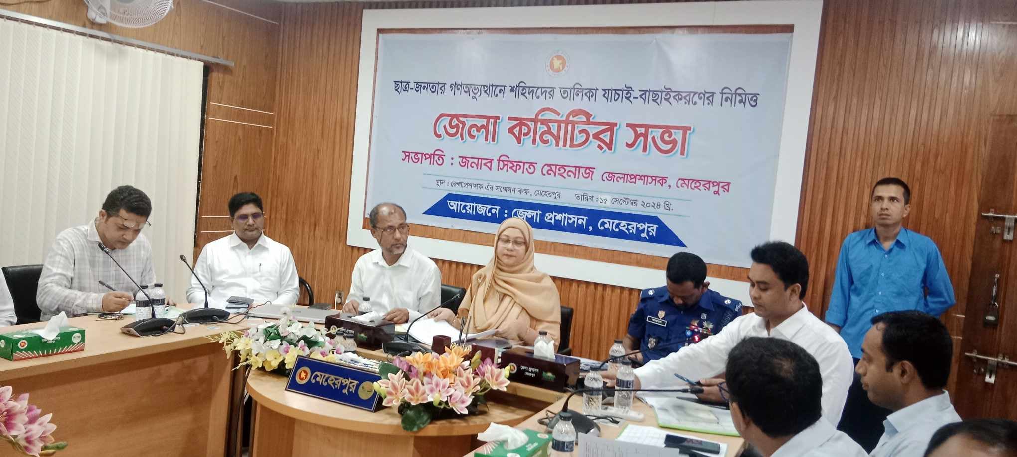 জেলা প্রশাসক সিফাত মেহনাজ এর সভাপতিত্বে যাচাই-বাছাই কমিটি সভায় বক্তব্য রাখেন সিভিক সার্জন ডা. মহিউদ্দিন আহমেদ, স্থানীয় সরকার বিভাগের উপ পরিচালক মোহাম্মদ শামীম হোসেন, অতিরিক্ত জেলা ম্যাজিস্ট্রেট রনি আলম নুর,অতিরিক্ত পুলিশ সুপার আহসান আলী, মুজিবনগর উপজেলা নির্বাহী কর্মকর্তা রেজাউল হক, গাংনী উপজেলা নির্বাহী কর্মকর্তা প্রতীম কুমার সাহা, সদর উপজেলা স্বাস্থ্য ও পরিবার পরিকল্পনা কর্মকর্তা ডা. অলক কুমার দাস প্রমুখ।